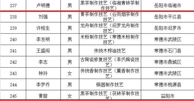 近期,湖南省文化和旅游廳發(fā)布《關(guān)于公布第五批省級(jí)非物質(zhì)文化遺產(chǎn)項(xiàng)目代表性傳承人的通知》,集團(tuán)3人入選。其中,集團(tuán)公司副董事長(zhǎng)、總工程師吳浩人榮獲第五批省級(jí)非物質(zhì)文化遺產(chǎn)項(xiàng)目紅茶制作技藝(湖南工夫紅茶制作技藝)傳承人稱號(hào);集團(tuán)益陽(yáng)茶廠質(zhì)管部經(jīng)理黃甜榮獲第五批省級(jí)非物質(zhì)文化遺產(chǎn)項(xiàng)目黑茶制作技藝(茯磚茶制作技藝)傳承人稱號(hào);集團(tuán)永巨茶業(yè)董事、總工程師盧明德榮獲第五批省級(jí)非物質(zhì)文化遺產(chǎn)項(xiàng)目黑茶制作技藝(臨湘青磚茶制作技藝)傳承人稱號(hào)。