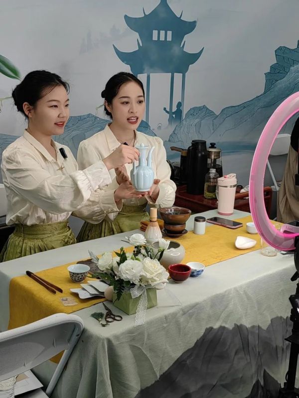 在集團(tuán)公司的另一展臺——湖南省茶葉博物館,茶藝師們也是忙得不亦樂乎。有的為入館顧客們分享茶藝體驗(yàn)課程,有的正在直播推廣五彩湘茶,還有姿態(tài)優(yōu)雅展示茶藝的。茶博會期間,湖南省茶葉博物館團(tuán)隊(duì)還攜金獎紅茶“國色天香”及眾多文創(chuàng)商品集體亮相。宣傳湖南好茶,傳播湖湘文化,湖南省茶葉博物館“真好看!”