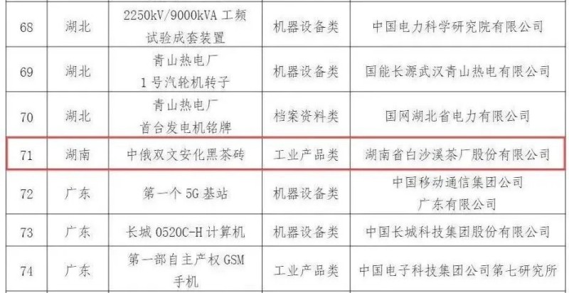2024年,為深入學(xué)習(xí)貫徹習(xí)近平新時代中國特色社會主義思想,全面貫徹落實黨的二十大關(guān)于建設(shè)文化強(qiáng)國、推進(jìn)新型工業(yè)化的戰(zhàn)略部署,用好紅色資源,賡續(xù)紅色血脈,講好共和國工業(yè)發(fā)展的故事,傳承弘揚(yáng)工業(yè)文化和工業(yè)精神,以實際行動迎接中華人民共和國成立75周年,國家文物局、工業(yè)和信息化部聯(lián)合印發(fā)通知,部署開展“共和國印記—工業(yè)之光耀中華”主題活動。主要內(nèi)容包括公布和推介一批代表性見證物,征集一批傳承紅色基因、弘揚(yáng)工業(yè)精神的工業(yè)遺產(chǎn)保護(hù)利用典型案例,舉辦“共和國印記”專題展覽等。由集團(tuán)白沙溪茶廠20世紀(jì)50年代生產(chǎn)的中俄雙文安化黑茶磚(俗稱“八字磚”)入選100項“共和國印記”見證物,并將在全國進(jìn)行巡展。